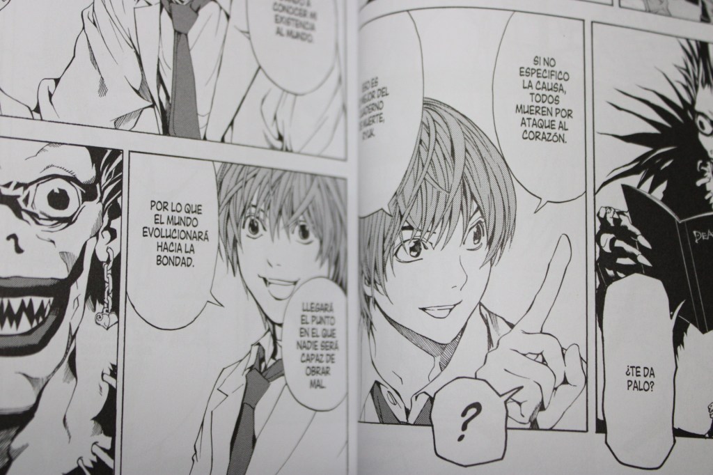 El final de este tomo termina con Light siendo investigado por L, pero la forma en que Light tiene cubierta su habitación contra espías, es increíble, si yo creía que le ponía color al esconder mis cosas valiosas en mi habitación o el dinero. Light lo lleva a otro nivel, que no se me hubiese ocurrido a mi jamás en la vida.
