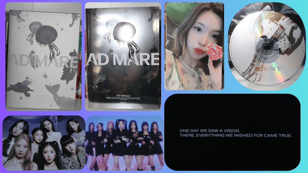 AD MARE es el single debut de NMIXX, lanzado el 22 de febrero del 2022. Saliendo en dos versiones una Limited Edition y la Light Version. Como yo soy alguien que llega tarde a las modas, y tarde a todos los debut, tengo la Light Version.